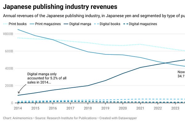 Sharp slowdown in Japan digital manga sales